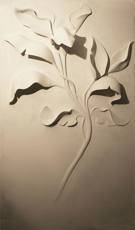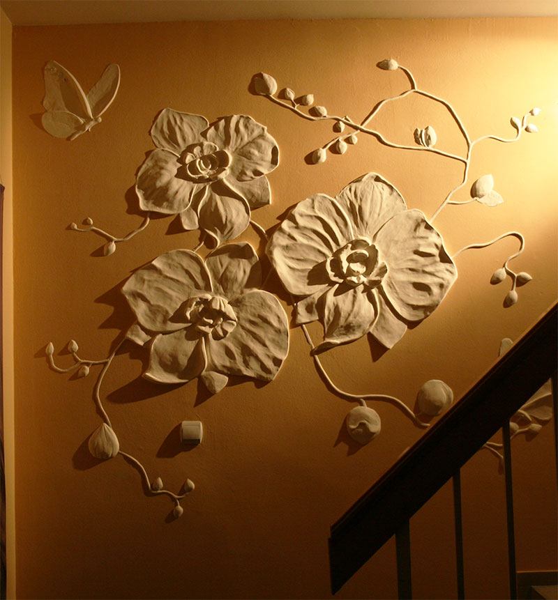 Ezek a nagyméretű domborművek a fal síkjából tűnnek elő zavaró fugák és tartószerkezetek nékül. Nem 3D panelek, szerves egészet alkotnak a fallal. Munkáim nem csak magánházak nappalijában, hanem villák, szalonok, irodák, hotelek és éttermek tágas tereiben is impozáns látványt nyújtanak.